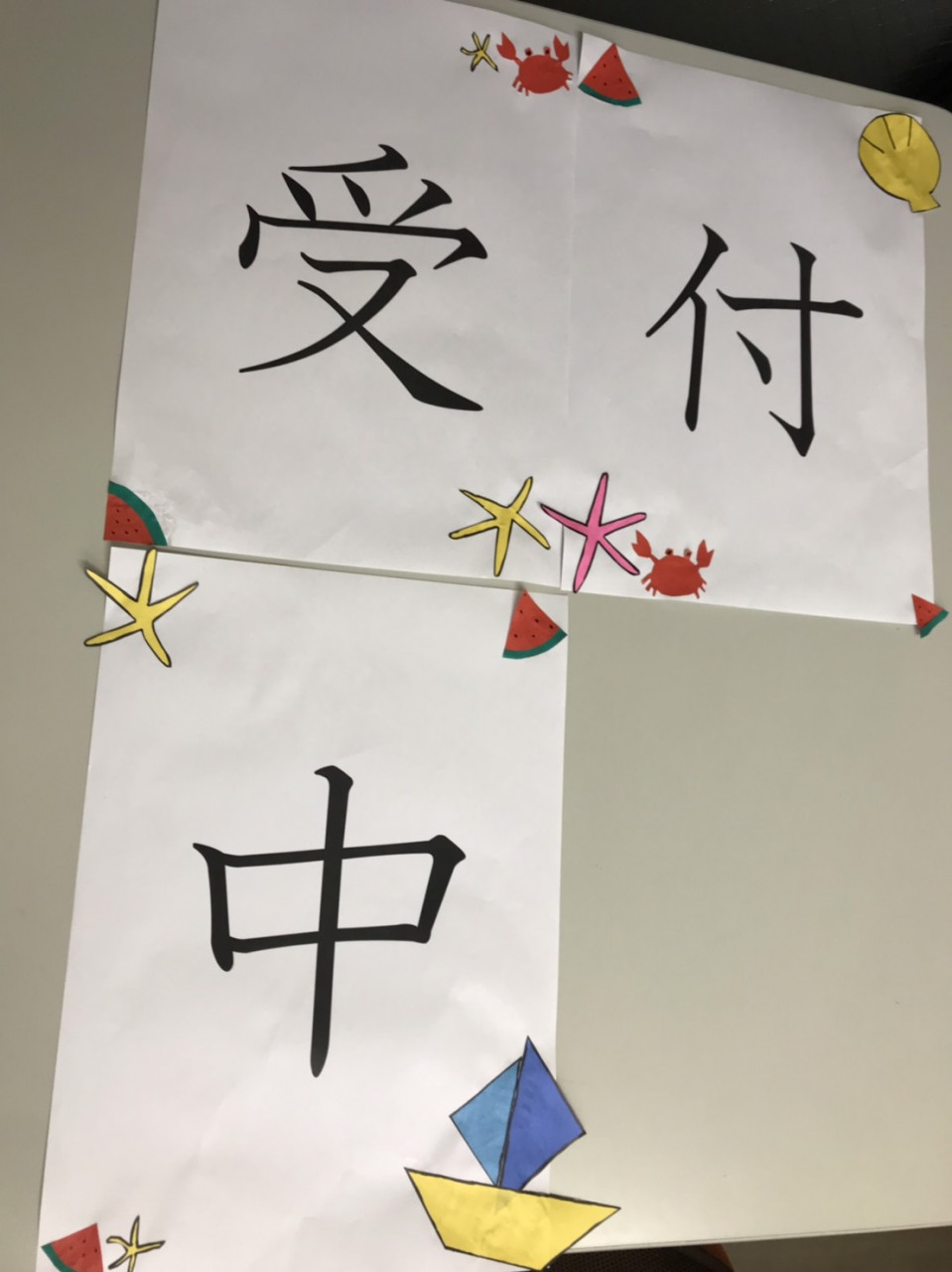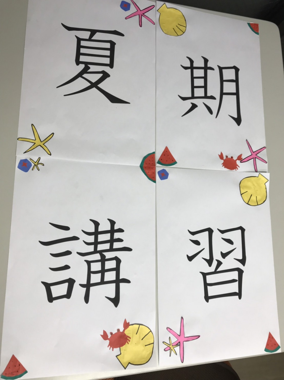 通称“D先生”こと、I講師が窓に貼る「夏期講習受付中」の文字を作ってくれました!